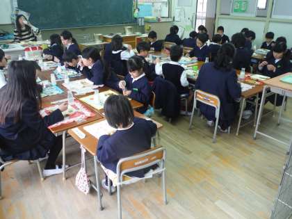 愛に育会の皆さんのご協力のもと、1時間目1組、2時間目に2組とそれぞれ1時間ずつ昔あそびを行いました。「おはじき」「駒まわし」「羽子板」「あやとり」「けん玉」「空き缶竹馬」「竹とんぼ」のコーナーに、班ごとに回ってそれぞれの遊び方を教わりながら楽しい時間を過ごしました。愛育会の皆様には、講堂という寒い場所でのご協力、誠にありがとうございました。