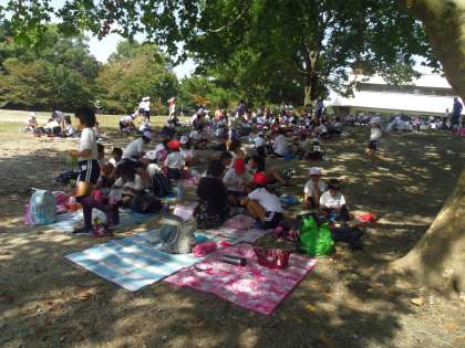 10月21日(火)、服部緑地公園まで全校遠足を実施しました。天候にも恵まれ、1〜6年生までのたてわり班でオリエンテーリングを行いました。異年齢での班編成により、協力の大切さを十分に学んでくれたと思います。愛育会の方2名が、ご多用の中、現地でサポートをしてくださいました。心から感謝申しあげます。ありがとうございました。
