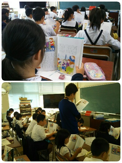 図書館補助員さんが来てくださっています。写真は2年生の時間です。読み聞かせが始まると、子どもたちが集まります。楽しい時間です。