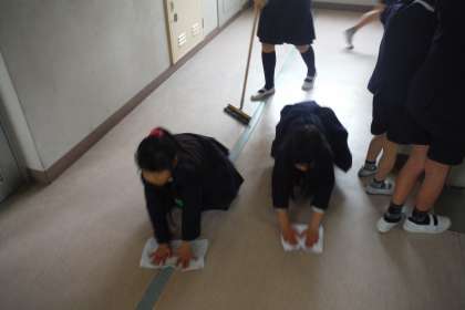 本日の清掃時間を利用して、「感謝の気持ちを込めて、学校をきれいにしよう」を目標に、縦割り班でそれぞれの担当場所の清掃しました。児童のみんなが一生懸命掃除をしてくれたので、学校全体がピカピカになりました。児童のみなさん、ありがとう!