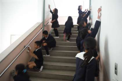 とても寒いなか、5年生は、読売テレビと大阪城に社会見学に行ってきました。テレビ局では、実際に毎日放送している番組スタジオや中継車等を見せていただきながら、スタッフの方から丁寧に説明をしていただきました。子どもたちは、メモを取ったりとても興味深く見学していました。大阪城では、階段で8階まで上がり回廊から大阪を一望しまし、その後、階下へ降りて大阪城について学習して行きました。