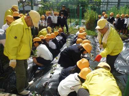 4月26日(木)2年生 さつまいもの苗を植えました。