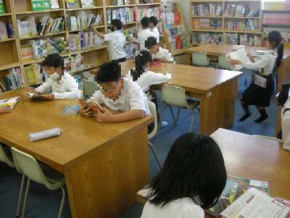 毎週木曜日には、学校司書の方から、正しい図書館の使用方法や図書の貸し出し方法等について学んでいます。