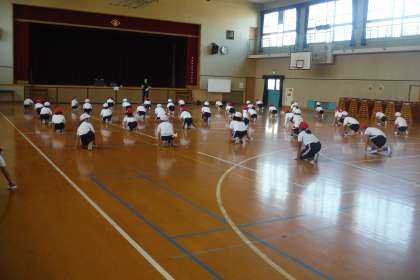 昨日に引き続き、全校練習を行いました。入退場、応援、大玉ころがし等の練習をしました。暑い中でしたが、子どもたちは一つひとつ確認しながら、一生懸命に取り組んでいました。