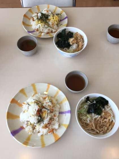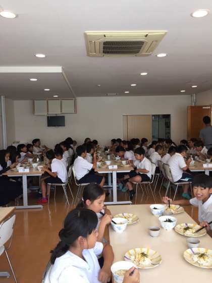 宿舎での最後の食事になります。自然の中、仲間とたべる食事はとってもおいしかったようです。 -