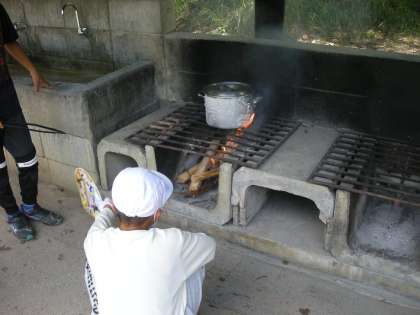 マキ、しば係の手際もよく、飯ごうもカレー鍋ともに、順調に炊き上がりました。