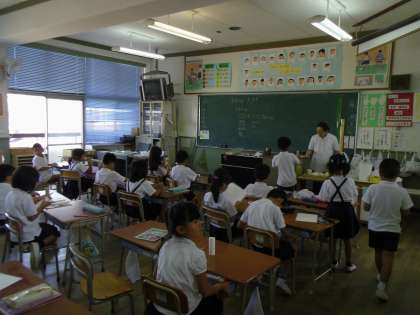 6年生です。道徳の授業です。グループで、「クリスマスツリーを作ろう」というものでした。「話し合い」「協力」が不可欠となります。アイデアを出し合いコミュニケーションをとっていました。さらに、より良いものを作るために、互いを認め合い、譲り合い、協力していました。