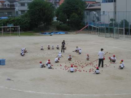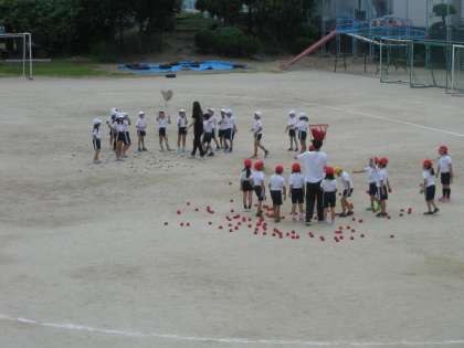 10月23日(日)の運動会に向けて、いよいよ運動会練習が始まりました。1年生が、夢中になって「玉入れ」の練習していました。後片付けも競争です。がんばりましょう。