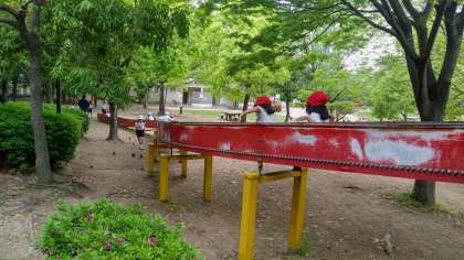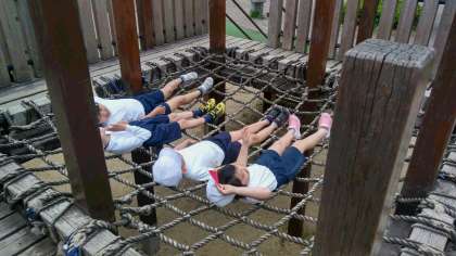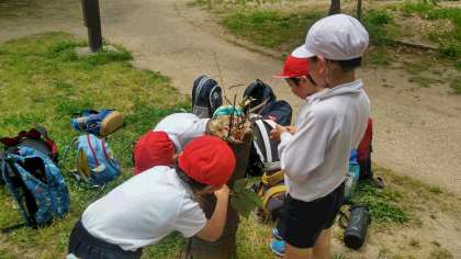 元浜緑地公園へ行きました。公園が貸し切り状態だったこともあり、子どもたちはおもいっきり遊び、楽しむことができました。遊具で遊ぶときもお弁当を食べるときも1年生、2年生が一緒に活動する姿が見られました。遊具だけでなく、芝生に寝転んだり植物を見つけて遊んだりと、春の自然を楽しむこともできました。