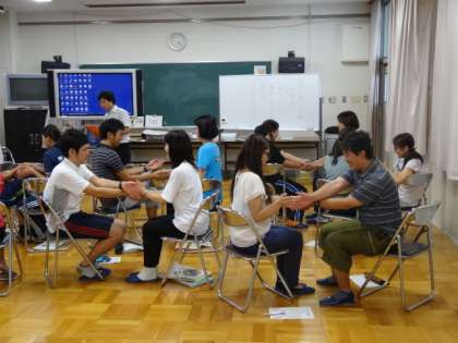 9月8日の放課後、教職員によるピア・サポート研修会をおこないました。ピア・サポートとは、「なかまと支え合い、課題を解決しようとする活動」のことです。大阪市内に勤務する先生方お二人を講師にお迎えして、あたたかな声かけや相手の気持ちを尊重する態度や言動などを身につけられるようにする指導の仕方について、楽しい活動を通して教えていただきました。