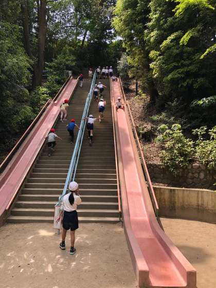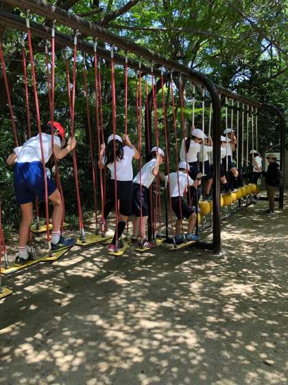 また、アスレチックやジャンボ滑り台にも挑戦し、グループで協力して仲良く活動する姿がたくさん見られました。