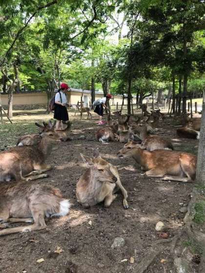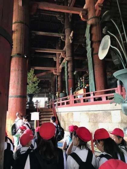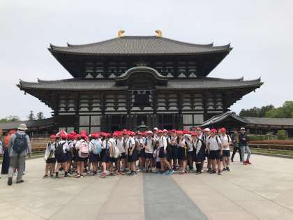 5月10日(金)、6年生は遠足で奈良へ行きました。子どもたちは、せんと君や鹿を見て喜びいっぱい。東大寺を見学して歴史を学び、鹿と戯れて奈良を満喫しました。また、外国人観光客や日本人観光客ともおしゃべりをしました。