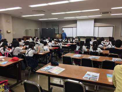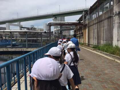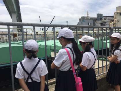 5月29日(水)四年生が社会見学で海老江下水処理場に行きました。下水処理場では、生活汚水がどのようにして綺麗な水になって、川に流されていくのか教えていただきました。子ども達は、下水処理場の内部を見学させていただき、次第に綺麗な水になっていく様子を見て、驚いていました。
