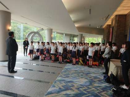 二日間お世話になったホテルの方に、代表の人がお礼のことばを述べました。そして、みんなで「ありがとうございました。」とお礼を言いました。