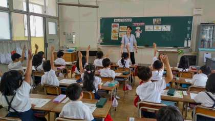6月5日〜7日に栄養教諭の方が本校に来られて、全学年全学級の児童に栄養指導をしていただきました。1年生にとって、はじめての栄養学習でした。姫里小学校の栄養教諭の先生に、「給食室をたんけんしよう」という題で給食室の中で使われている機材や調理員さんのお仕事などについて教えていただきました。先月、給食室を見学に行ったこともあり、子どもたちははじめて知った機械に興味深々でした。また、現物のしゃもじと背比べもして大きさを実感することもできました。これからも好き嫌いなく、たくさん食べて元気に過ごしてほしいです。