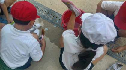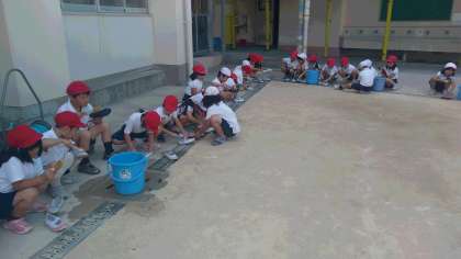 上靴の洗い方を学習しました。家庭でも、自分でできることを増やしてほしいと思います。すでに毎週末に自分で洗っているという子が多かったですが、みんなで洗うと、またいつもと違って楽しかったようです。