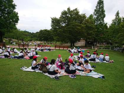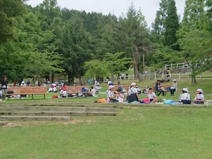 芝生の上で、お弁当を楽しく食べました。時折、羊がやってきましたが、お弁当は無事でした。