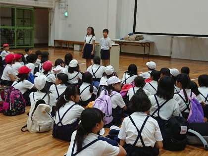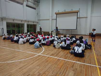 自然の家に到着して、入所式を行いました。その後、オリエンテーションがあり、施設の使い方や注意しなければならないことの説明がありました。
