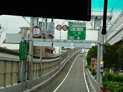 14:30現在、六甲山をおりて、高速道路に入りました。車の流れはスムーズです。