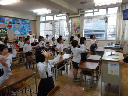 10月20日に英語教育重点校として「学校公開」をおこないました。全市の先生方を対象に英語の音声指導を中心とした全学級の授業の子どもたちのいきいきとした活動の様子を見ていただきました。その後、全体会をおこない、意見交流をしました。今後の活動に生かせる多くのご意見をいただきました。