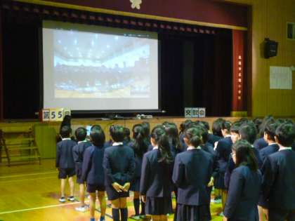 10月26日(土)に第55回東京佃島・大阪佃小学校交歓会がおこなわれました。今回からテレビ会議システムで、東京佃島小学校と中継で交流し、両校の児童が一同に会しての交歓会となりました。地域をはじめ、多くのご来賓や保護者の方々にも祝福していただき、本当にありがとうございます。