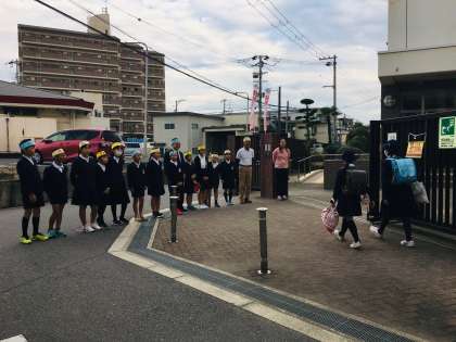 今週は、右側強調週間です。代表委員会の「右側歩こうハチマキ隊」が毎日正門に立って声かけをしていきます。また休み時間もハチマキをまいて声かけをしています。廊下を歩く時は、静かに右側を歩くようにしましょう!