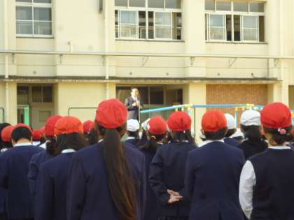 休み時間になると、子供たちのにぎやかな声が響く佃小学校の校庭です。