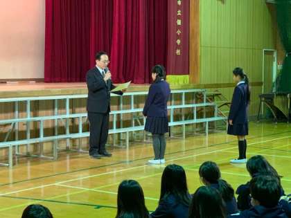 その後、「伝えよう!いのちのつながり」の作文の入賞者たちの発表があり、賞状が校長先生より渡されました。