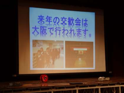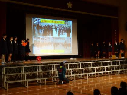 11月18日の児童朝会で、今月8日の「交歓会」に参加した人たちが報告会をおこないました。佃島小学校が大きくてきれいだったとか給食のこと、はやっているスポーツのことなど、大阪との違いやよさなど交流できて楽しかったと話していました。50回目の交歓会に参加できた喜びと来年は大阪に迎える年なので負けないぐらい楽しい交歓会にしたいという思いを発表することができました。