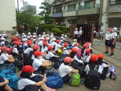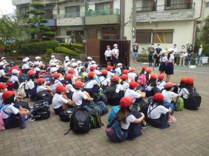 出発式の後、参加児童全員、元気に出発しました。1泊2日の林間学習での経験を通して子どもたちが成長することを期待しています。