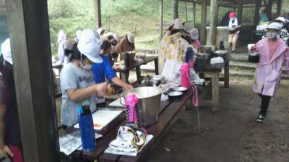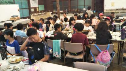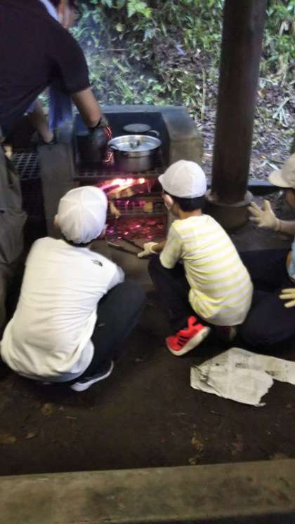 悪戦苦闘しての、火起こしからご飯炊き、カレーの煮込み。みんなで協力して出来上がったカレーライスは、最高においしい。