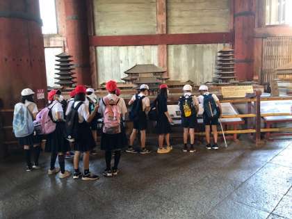 東大寺では、歴史で勉強した奈良の大仏を見学し、そのあまりの大きさにみんなとても驚いていました。