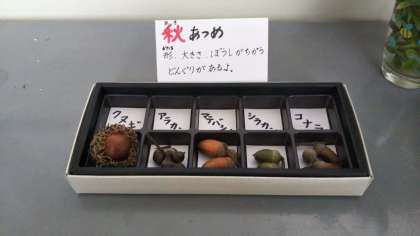 「○○の秋」の○○に何を入れますか?と先日問いかけましたが、自然を当てはめて見ました。以前にコスモスや栗、しそや紫式部、彼岸花などを紹介しましたが、今日はリンドウ、どんぐりを紹介します。自然にもいろいろな秋が見つかりますね。