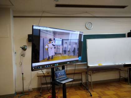 12月4日(金)の昼休みの時間に、健康委員会のメンバー限定で、先日ビデオ撮りをした「新型コロナウイルスについて」の劇の上映会を行いました。 校長先生にも見ていただきました!