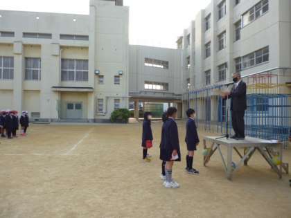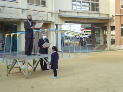朝会時、「税の習字」「緑の絵コンクール」「消防図画」の表彰状が渡されました。