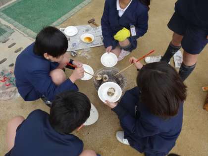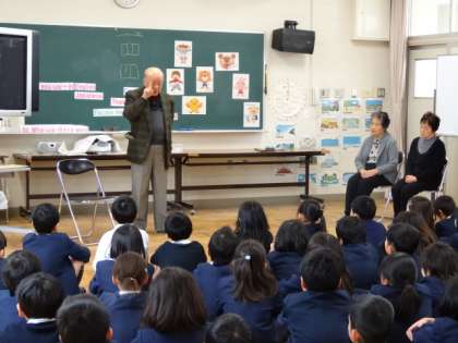 2月5日、地域の方をゲストティーチャーにお招きし、「昔のくらし」について3年生の子どもたちに教えていただきました。多目的室ではご自身が3年生だったころの食事や疎開の様子などについてお話しくださいました。その後、運動場で七輪や炭を使ってお餅を焼いて食べました。現代の暮らしぶりとは違う様子がとてもよくわかりました。