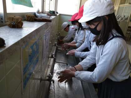 かけあし終了後は手洗いも忘れず行っている子ども達です。