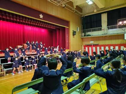 そこで、卒業を迎える6年生に「ありがとうの会」を開く計画を立て、開催しました。みんな、どんなことをしたら6年生が喜んでくれるか考え、用意をしました。クイズやゲーム、ダンスや歌などをして、6年生の卒業をお祝いしました。緊張したそうですが、6年生も喜んでくれて、みんなとても満足していました。