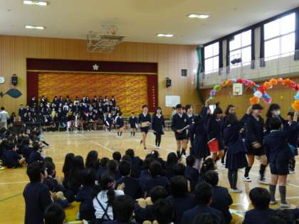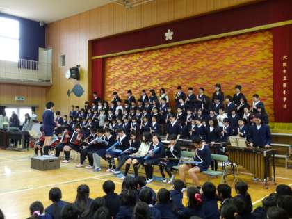 2月26日、1年生から5年生はお祝いとお礼の気持ちを込めて歌や合奏をおこないました。6年生はプレゼントや合奏でありがとうの気持ちを伝えました。素敵な心の交流ができました。