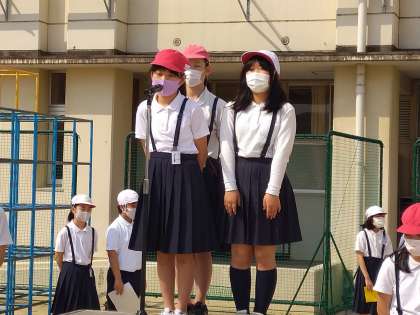 6月8日(火)の児童集会時に、健康委員会の児童3名が「歯ピカピカ週間」について、全校児童にむけて次のことを呼びかけました。