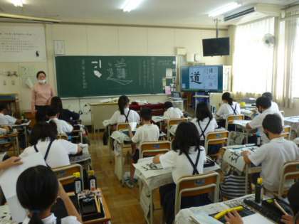 5年生が書写の学習で「道」という字を書いていました。始筆や終筆に気をつけたり、部首の組み立て方に気をつけたりしながら、集中して学習に取り組んでいました。最後には、自分らしさあふれる、それぞれの子どもたちの「道」が仕上がりました。