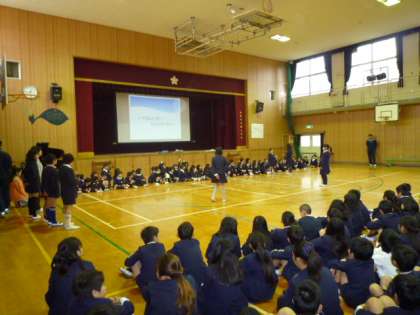 4月10日(金)、1年生の「歓迎会」を行いました。66名の1年生が「よろしくお願いします。」とあいさつして「歓迎会」が始まりました。代表鵜委員会のお兄さん、お姉さんが中心となって進められ、クイズやインタビュうー、合唱などを行いました。新しい仲間も加わって、楽しく過ごすことができました。