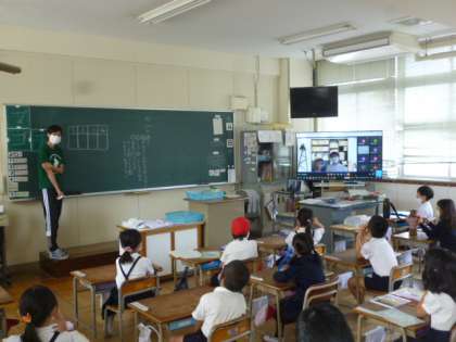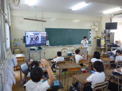 9月28日(火)の児童集会は、双方向通信を活用した初めての児童集会でした。内容は、集会委員会の先生や子どもたちが口ずさんだり、リコーダーで演奏したりする曲の題名を答える「曲名クイズ」でした。初めての試みでしたが、楽しく活動することができました。