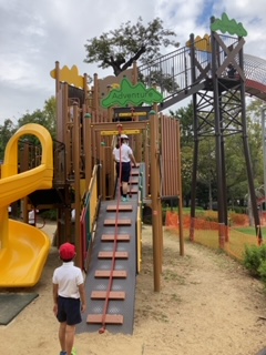一年生にとっては初めての校外学習。秋を満喫して、一年生も二年生もアスレチックやどんぐり拾いなども楽しんでいました。