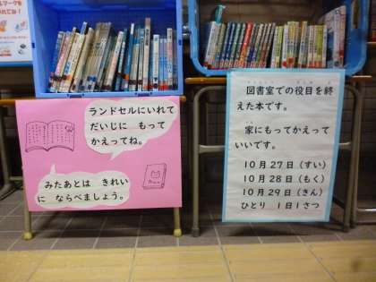 この度、除籍したものの、まだまだ子どもたちに読んだり調べたりしてもらえそうな本を、家庭にもらって帰るように呼び掛けています。1日ひとり1冊、27〜29日までの3日間限定です。