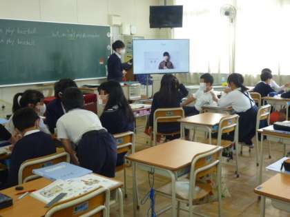 2組:英語「Unit5 He can run fast. She can do kendama.」の学習。クイズ、ゲームを中心に楽しく活動していました。