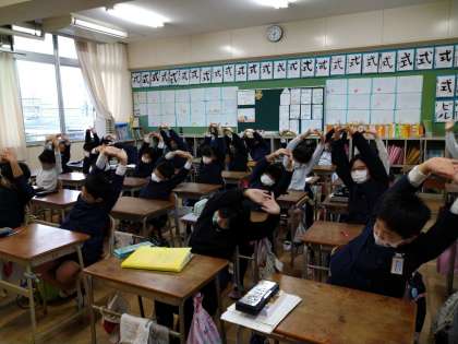 3年生では、毎朝学活の時間に、担任の先生と一緒に「しせいたいそう」を行っています。