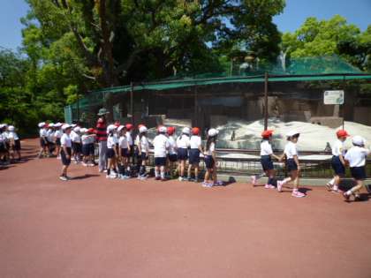 5月21日(木)、1年生は校外学習で天王寺動物園に行きました。天気もよくカラッとした気候で、とても過ごしやすかったです。小学校で初めての校外学習でしたが、ルールをしっかり守り電車の中でも静かに過ごしました。たいへんよくできました。園内では楽しいお弁当の時間をはさんで、午前も午後もたくさんの動物を見てまわり、とても楽しく学習しました。特に、ホッキョクグマの親子がタイミングよく見られて、とてもかわいらしかったです。
