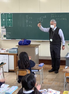 いろいろなむかしのあそびに取り組んでいる1年生。2月3日には、「佃小学校のけん玉名人」山本教頭先生が、ゲストティーチャーとしてけん玉を教えに来てくれました。けん玉をするときの注意点、けん玉の各部名称などを教えていただき、技も披露してもらいました。技が決まった瞬間、子どもたちは拍手!教頭先生もガッツポーズをきめ、大変盛り上がりました。