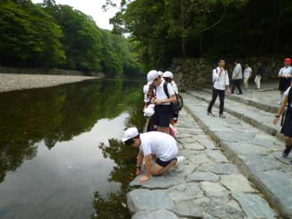 5月28日(木)、29日(金)の一泊二日で、6年生は「修学旅行」に行ってきました。1日目は伊勢神宮を見学しました。歴史的な建造物や自然など、文化や伝統にふれることができました。昼食後、グループごとでおみやげを買いました。ホテルに着いて夕食後、夜のマリンランド(水族館)では直接魚をさわったり、ペンギンとふれあったりするなど、貴重な体験ができました。